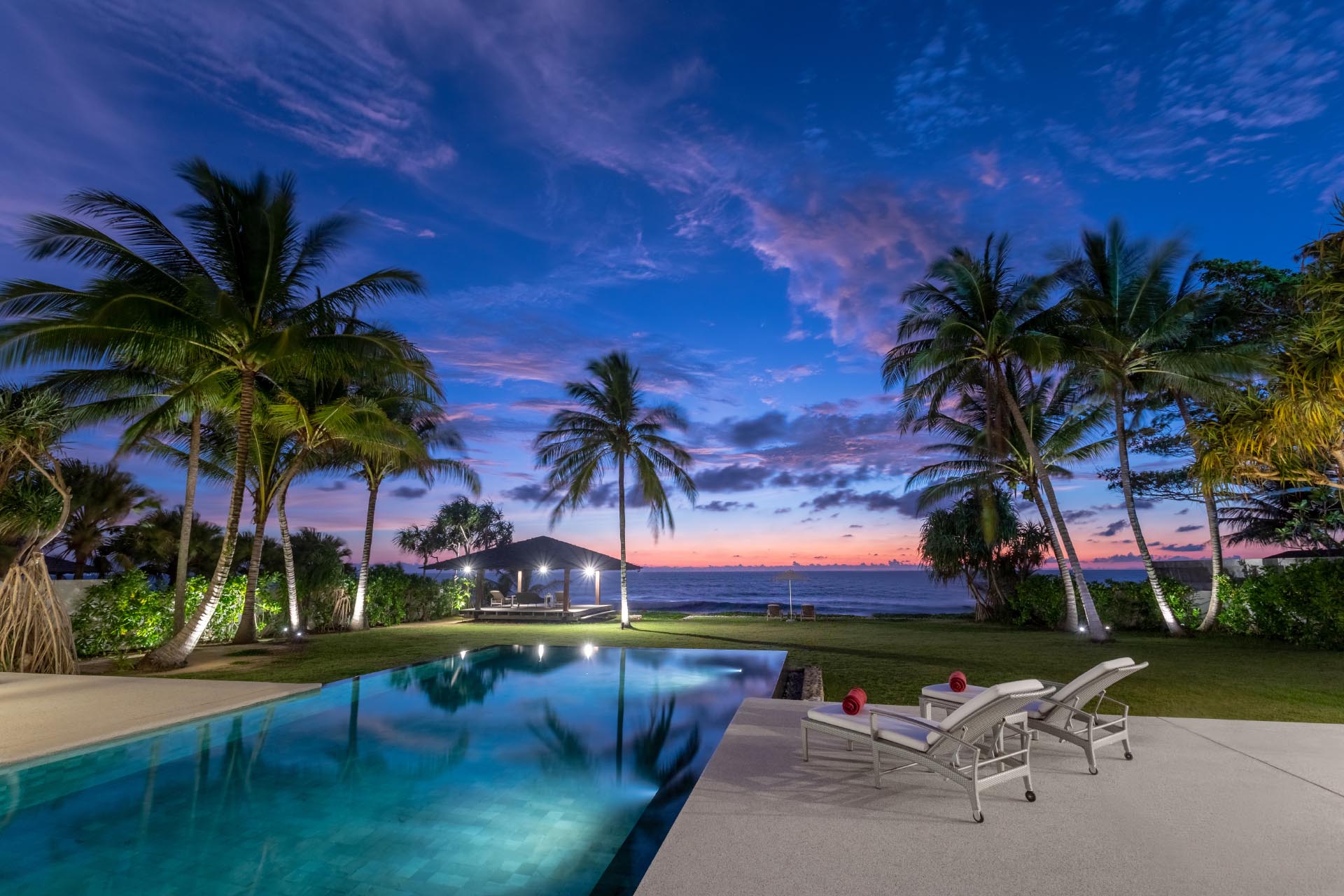 Pool Area Swimming pool Length 25m width 6m Depth 1.3 meters Ocean and Sunset View 8 Sun Loungers 3 Sun Umbrellas Towels 9 Coffee Table Sofa seating for 6 persons Access to the beach and the lawn garden 2 kayaks GALLERY